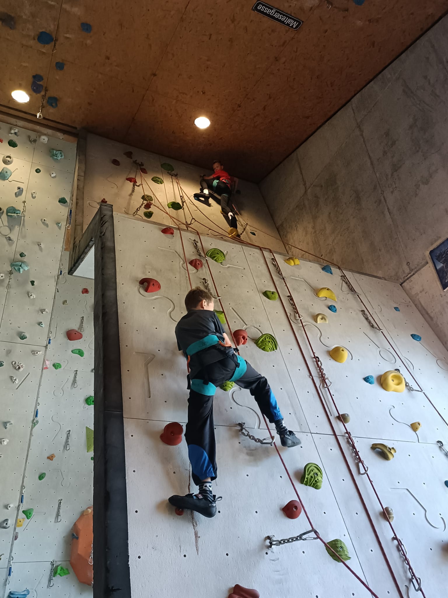 Klettern in der Kletterhalle.