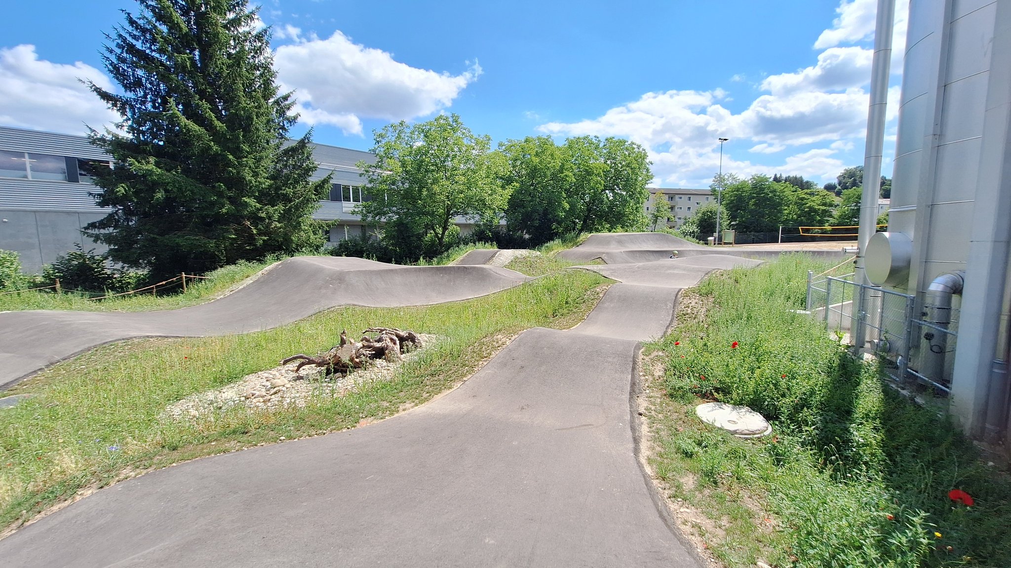 Wir vergnügen uns auf dem Pumptrack mit Kickboards, Rollschuhen, Inlineskates oder mit dem Skateboard.
