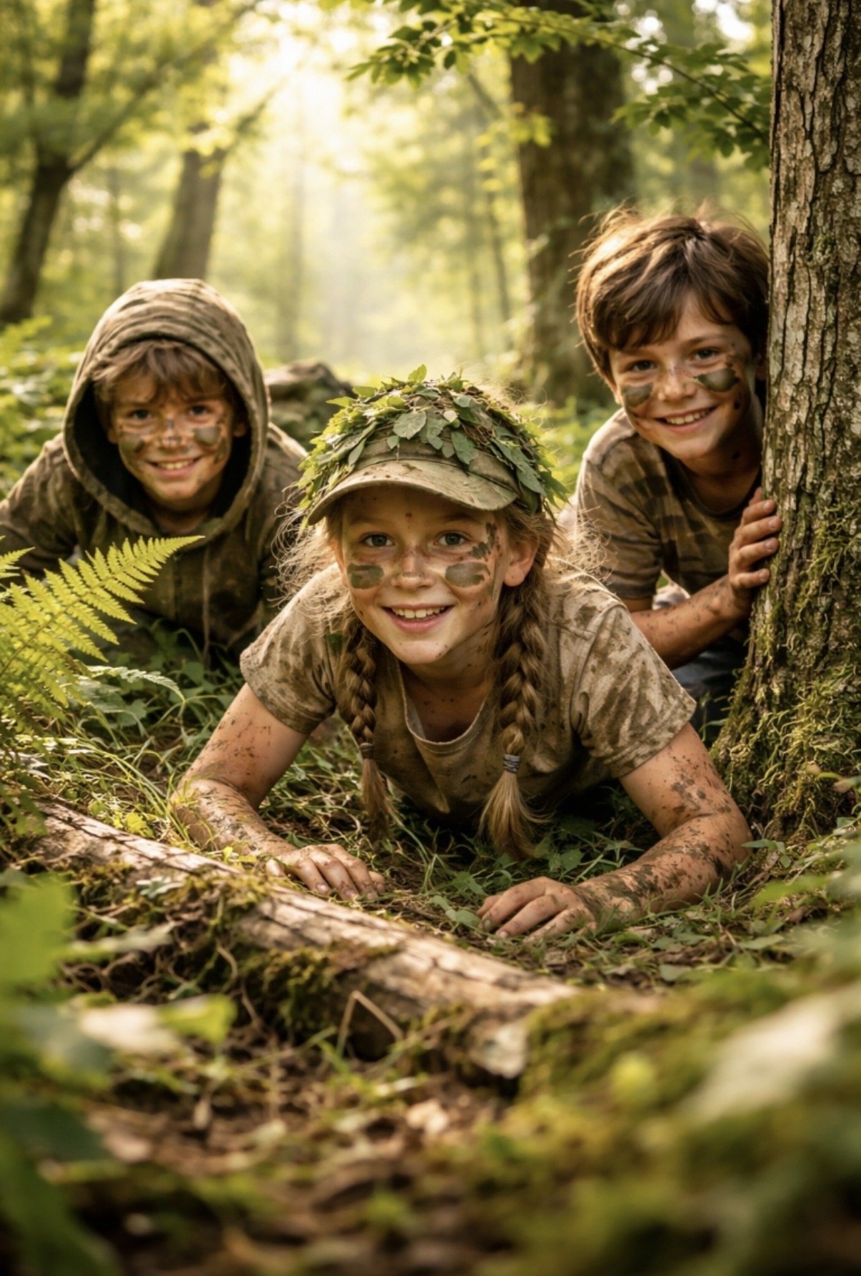 Gemeinsam machen wir uns im Wald auf Spurensuche und versuchen selber gut getarnt durch den Wald zu schleichen.